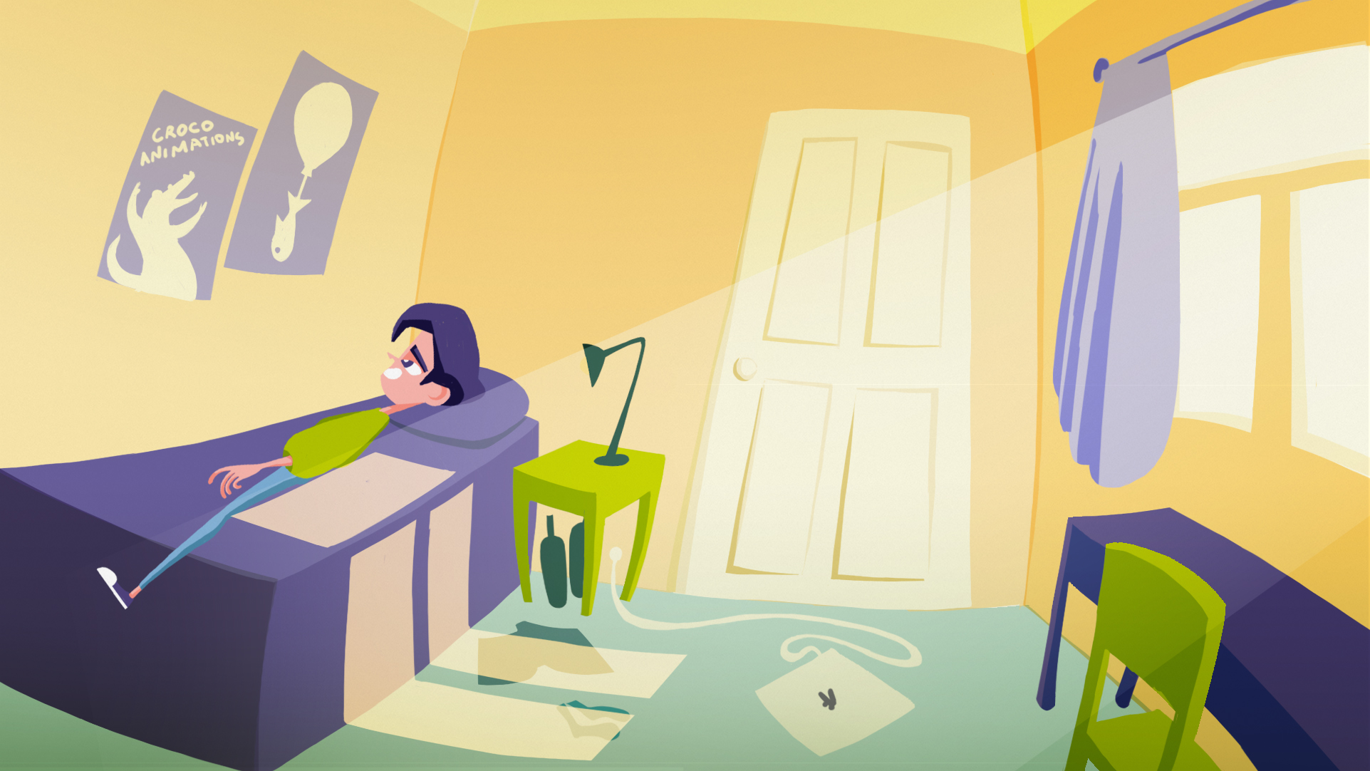 One of the most challenging aspects of the film was to have a "lineless" art direction. It pushed to consider every inch of the screen, find solutions that are harmonious, yet distinct enough to prevent blending in the color composition.